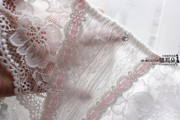 溫婉名媛輕奢純白純棉綢緞絲帶立體繡花蕾絲女三角內褲