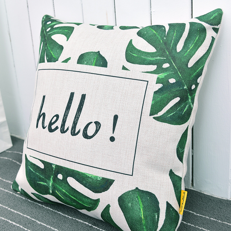 hello綠葉子靠墊抱枕套加厚棉麻沙發靠枕抱枕汽車護腰枕腰靠