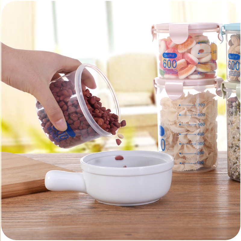 / 刻度透明塑料密封罐冰箱保鮮罐廚房五谷雜糧收納盒食品儲物罐防潮
