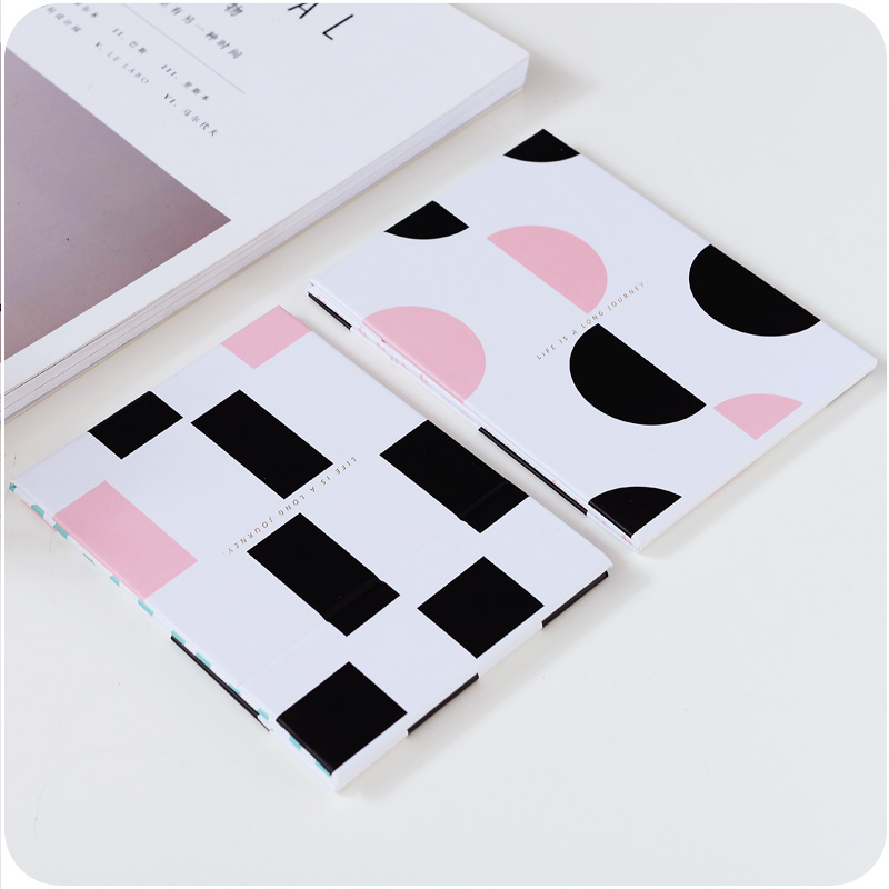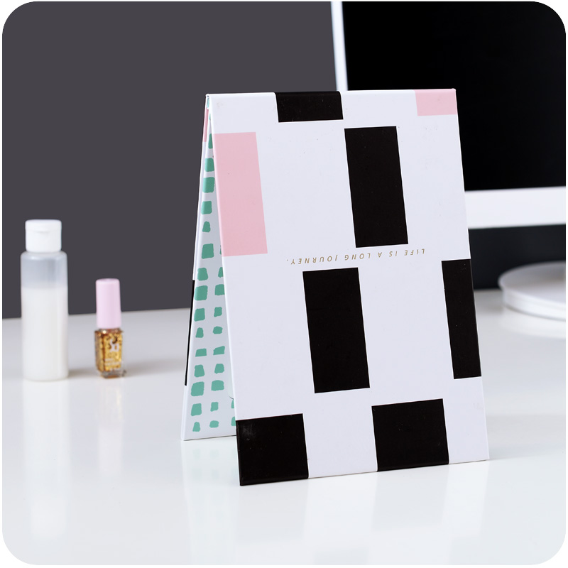 可愛便捷隨身化妝鏡皮質防摔折疊鏡女生梳妝鏡創意幾何圖案便攜鏡
