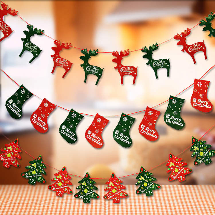 圣誕節裝飾商場酒店幼兒園無紡布拉旗圣誕三角旗橫幅掛旗八面彩旗