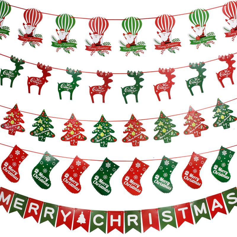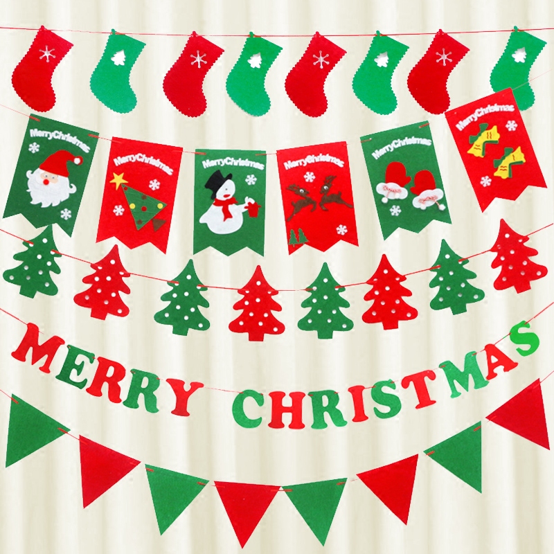 / 圣誕節裝飾商場酒店幼兒園無紡布拉旗圣誕三角旗橫幅掛旗八面彩旗
